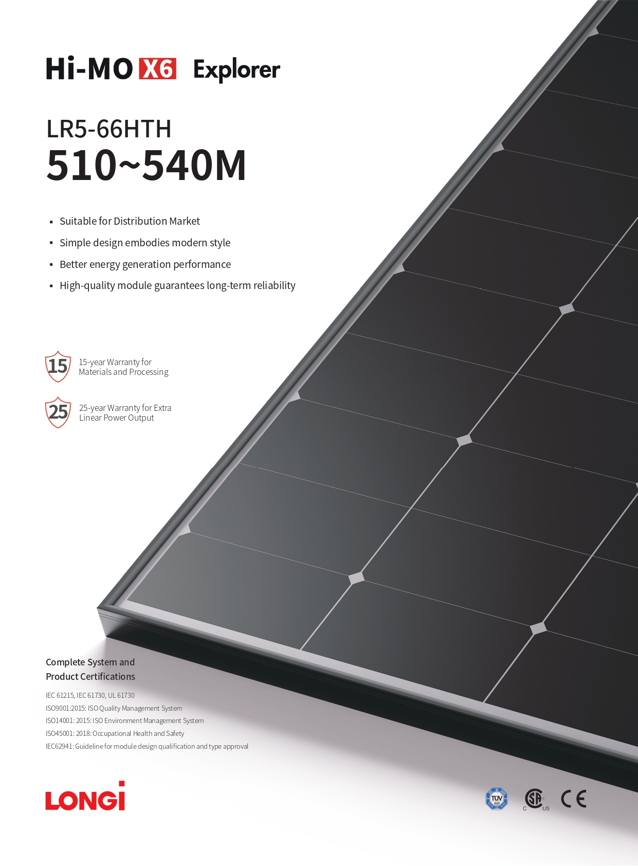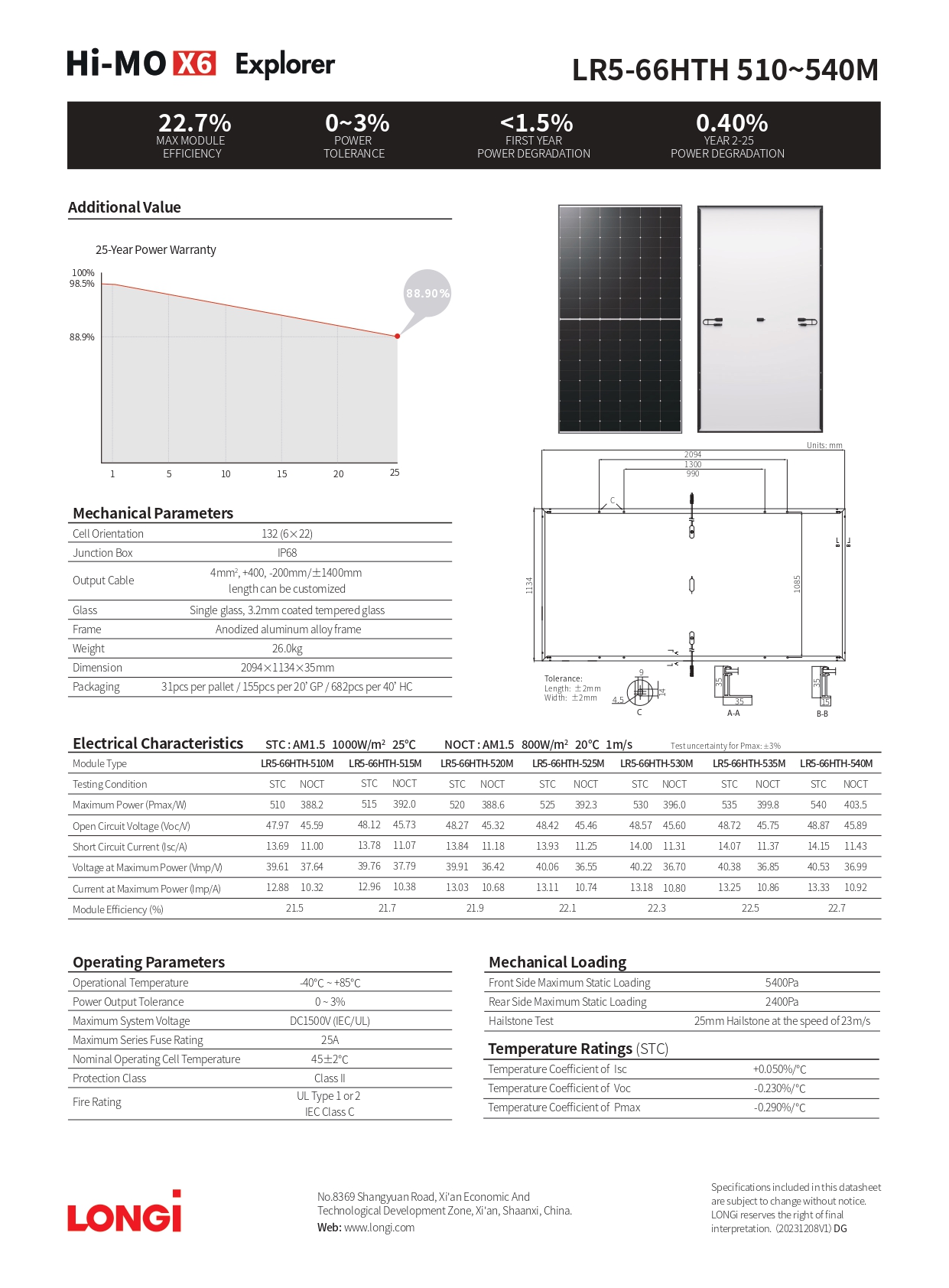 Panel fotowoltaiczny Longi LR5-66HTH-520 (HIMO6) BF cechują:
