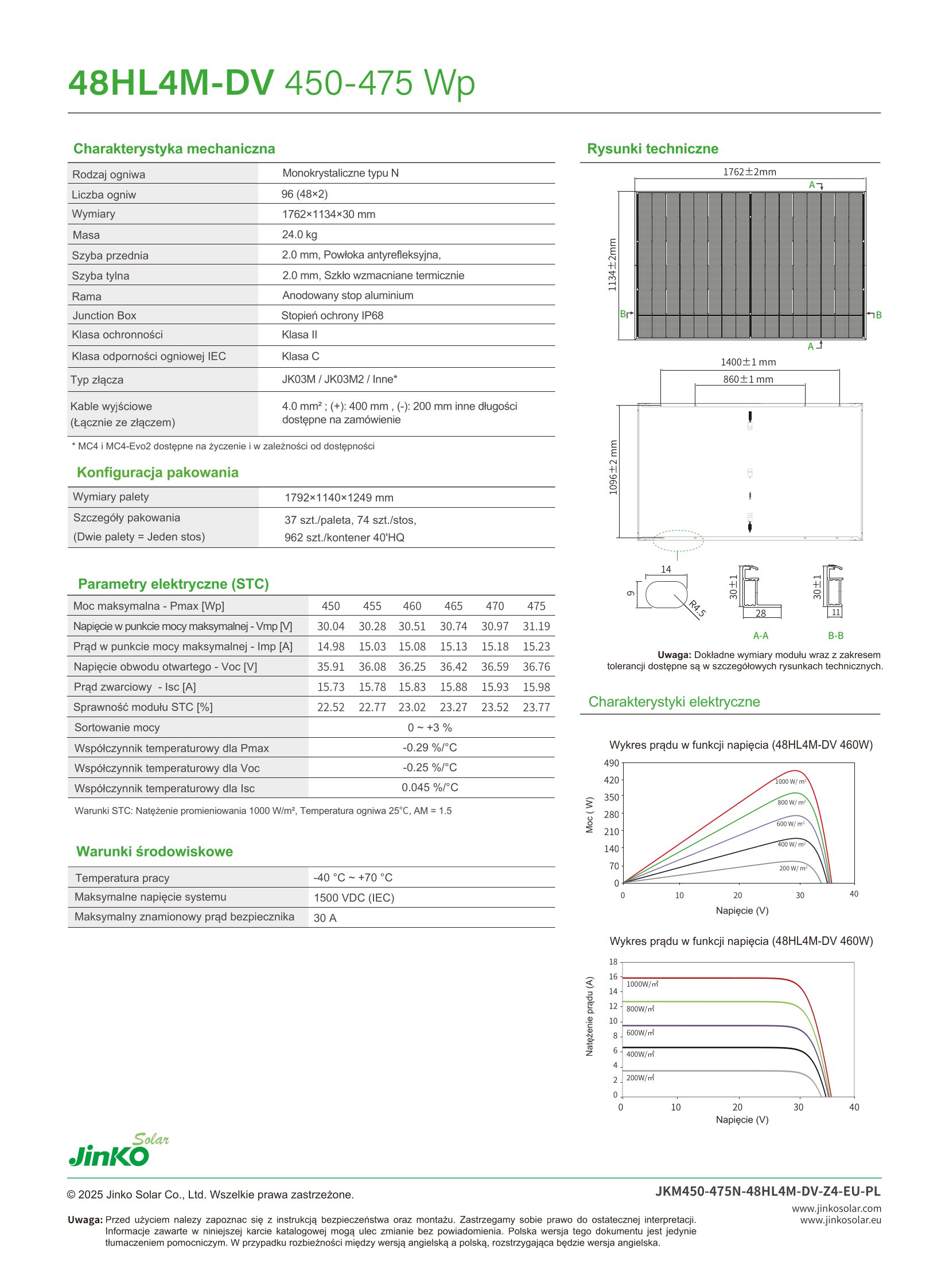 Jinko JKM460N-48HL4M-DB to świetny wybór dla instalacji wymagających wysokiej sprawności, trwałości i estetyki.