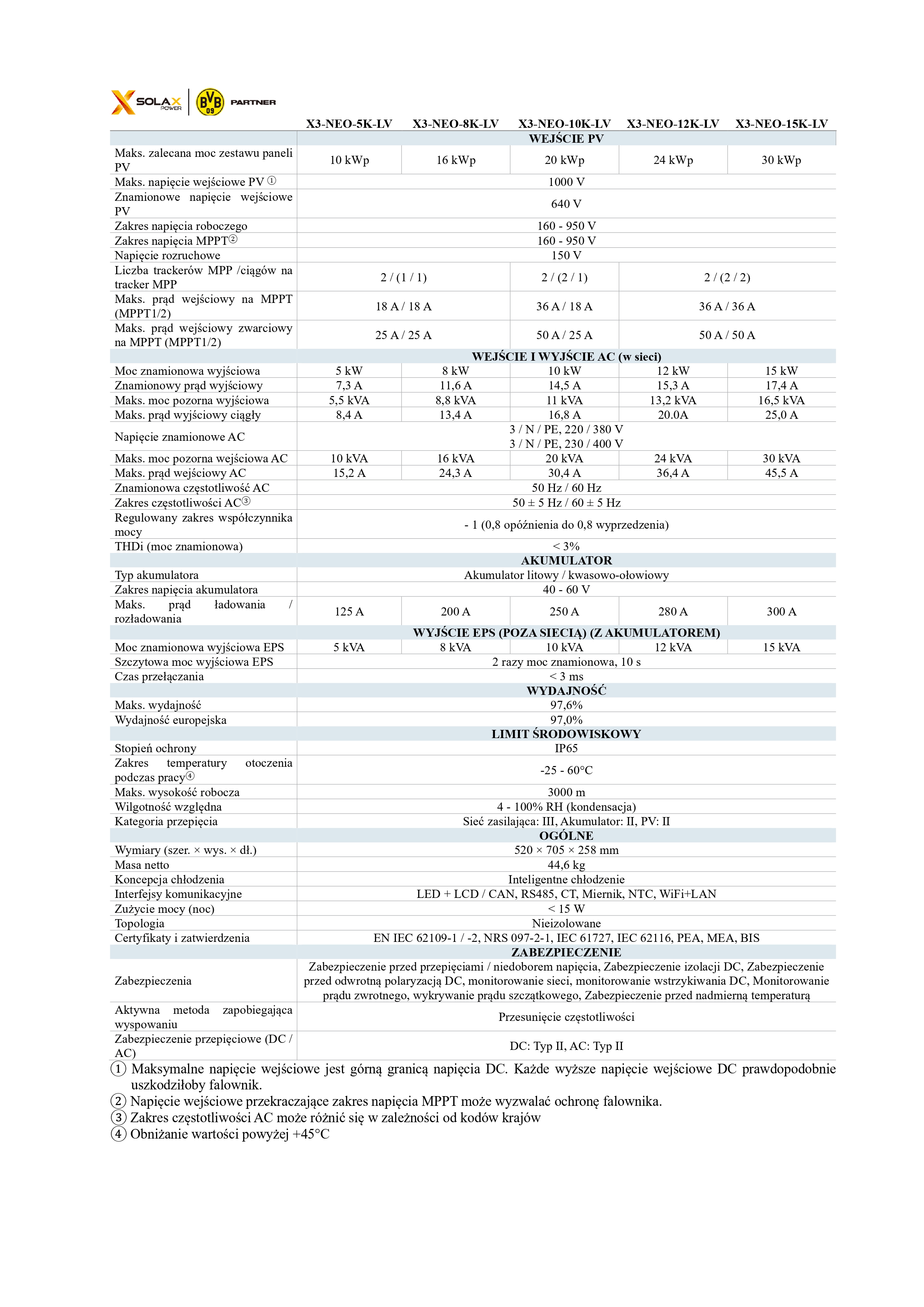 Zapewnia do 200% przewymiarowanie PV i 110% wyjścia AC, gwarantując wysoką wydajność i elastyczność. X3-NEO-LV zapewnia ochronę na poziomie IP65, wbudowaną funkcję SPD i opcjonalny system AFCI dla zapewnienia bezpieczeństwa. Ekonomicznie obsługuje panele słoneczne o dużej mocy z niskim napięciem rozruchowym .