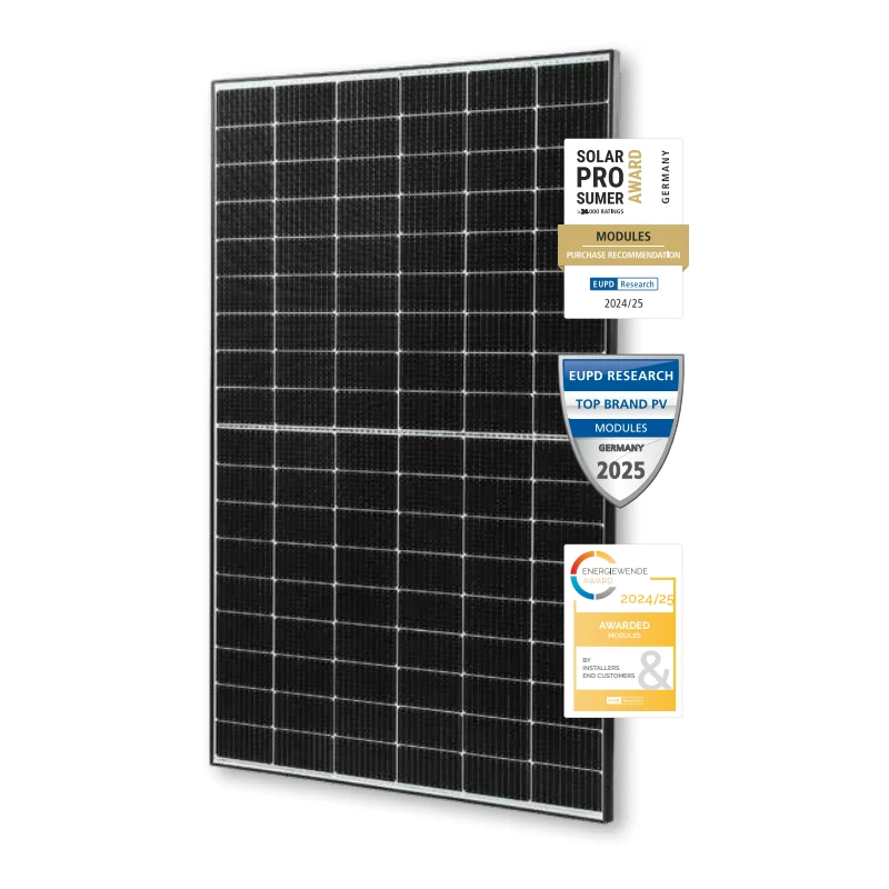 Dzięki zastosowaniu nowoczesnych rozwiązań, takich jak technologia połówkowych ogniw (half-cut) oraz multibusbar, moduł osiąga wysoką sprawność i stabilną pracę nawet w trudnych warunkach oświetleniowych.